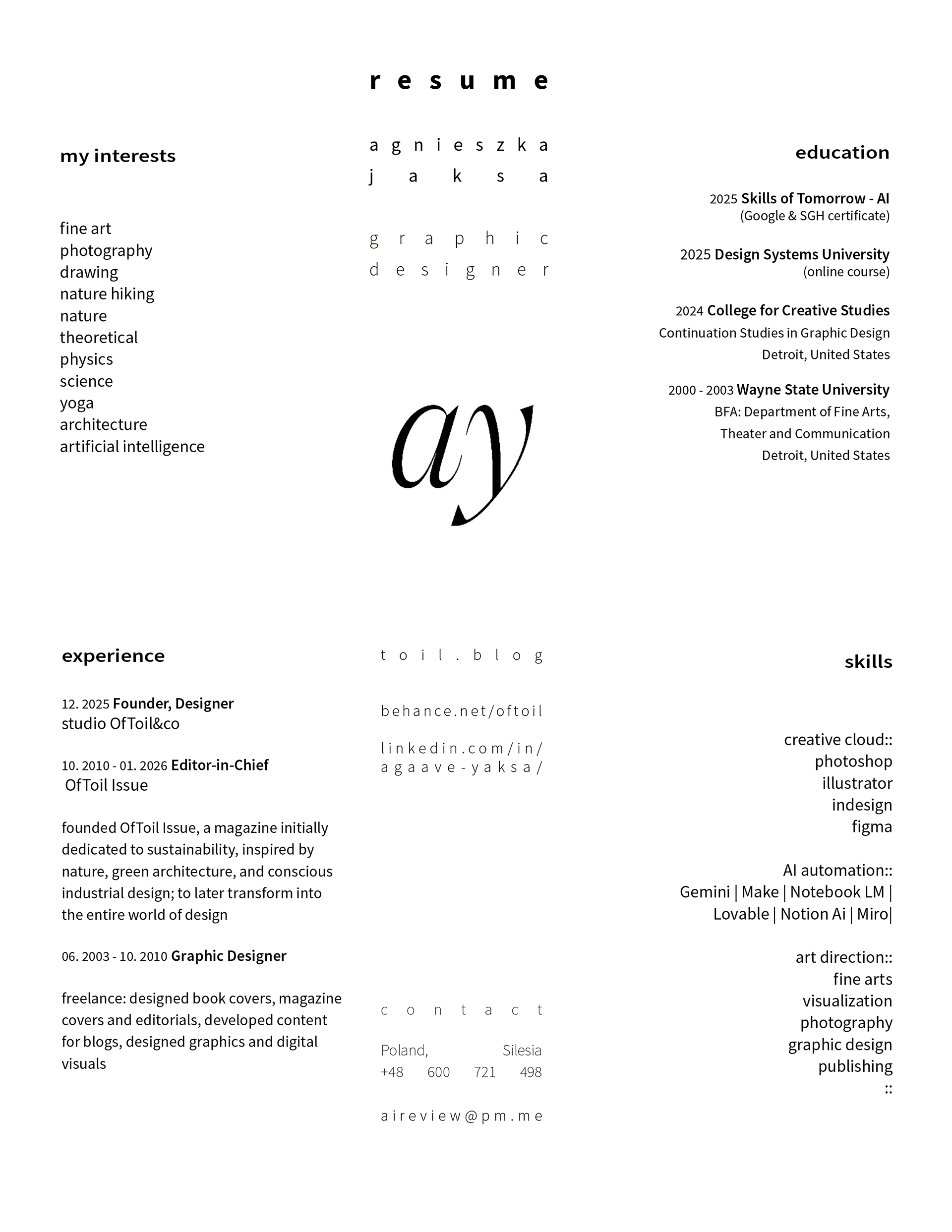 Alongside personal projects, I’ve been developing independent publishing and design initiatives, which have strengthened my sense of editorial judgment, visual consistency, and long-form thinking. I’m now focused on transitioning into a professional design environment where I can deepen my skills, collaborate, and contribute to meaningful visual work.