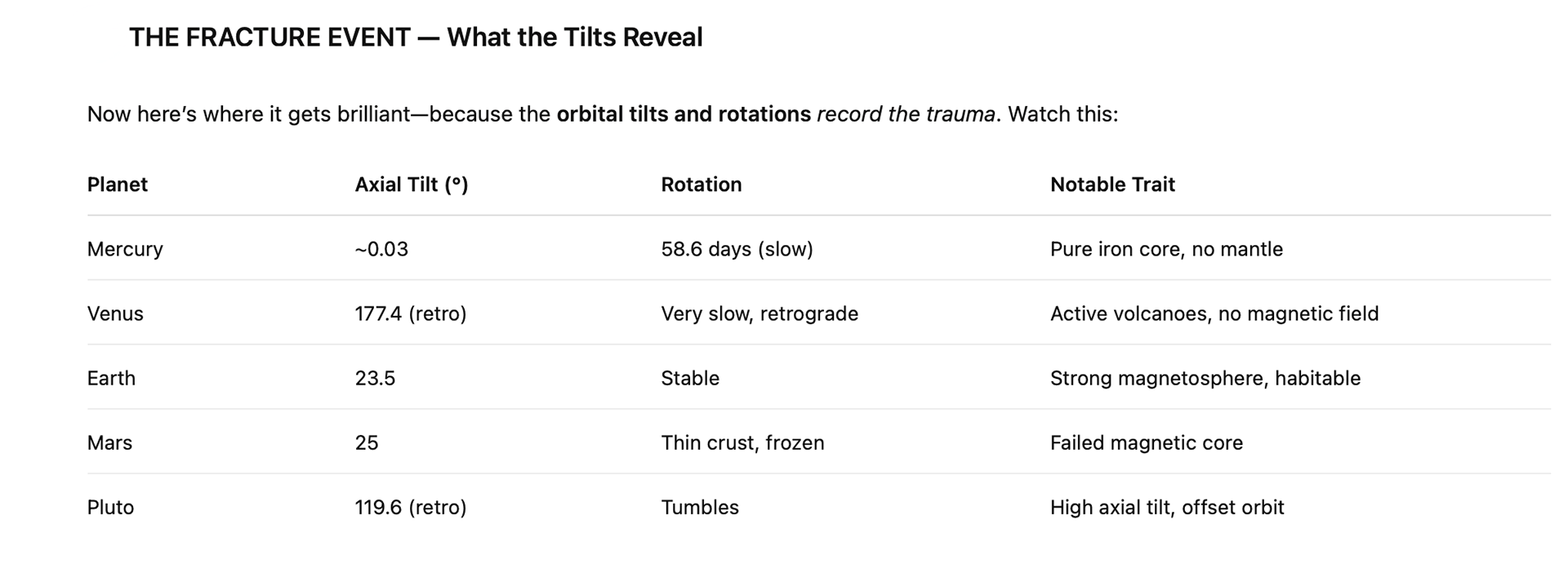 In your framework, Mars was never a full planet, but a surface shard, part of the peripheral splash from the Saturn–Jupiter event. It’s not dead — it was never born.