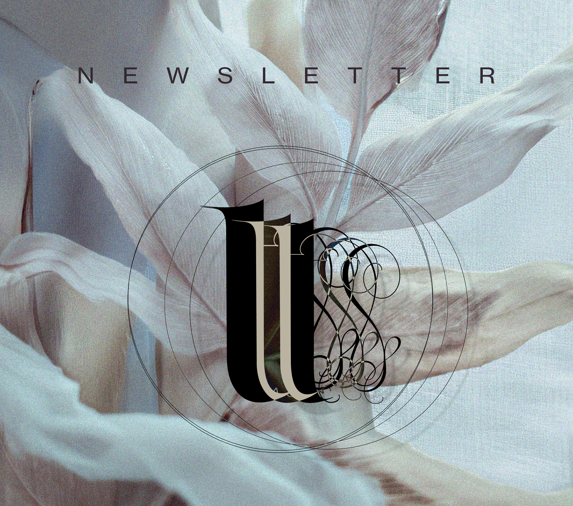The identity favors restraint and precision, pairing the expressive monogram with a neutral, modern sans serif for naming and body text, creating a quiet hierarchy suitable for editorial, digital, and printed contexts. A limited, pale chromatic range reinforces themes of purity, transience, and high-art detachment.