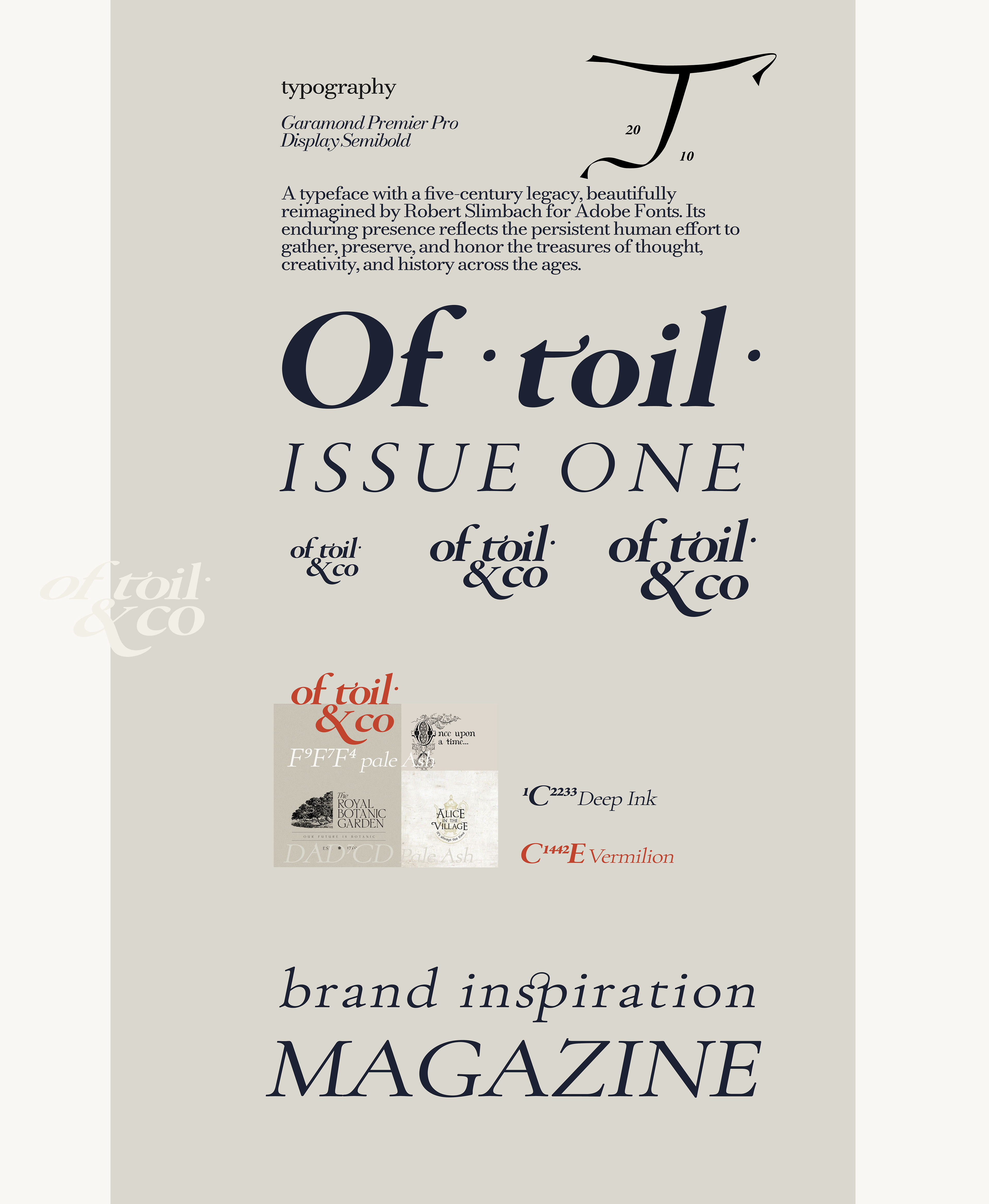 The Robe of the Artifact Pearl-dark, weightier, touched with gold and crimson. In this robe OfToil appears rarely, like a sovereign at ceremony. It is the moment when the record of days becomes a treasure, an edition, a thing to be kept. This is the printed face, the voice of wax and seal. ⸻ The liturgy of the brand is simple: the everyday and the feast, the archive and the artifact, the ink and the pearl. Two robes, one body — laboring, remembering, breathing to the rhythm of creation.